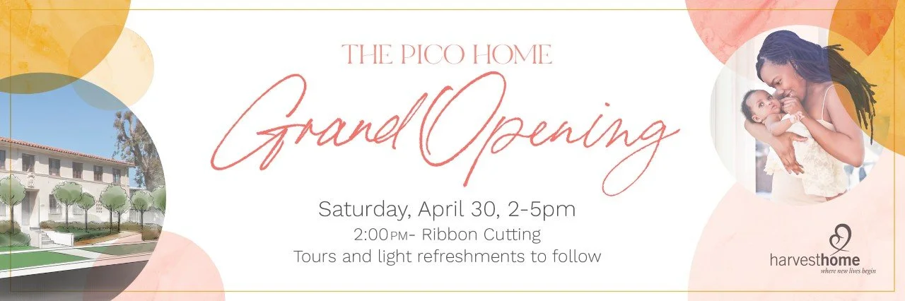 Join us as we celebrate this historic moment in Harvest Home’s history as we open the doors to the Pico Home, Harvest Home’s second home that will triple the number of pregnant women who receiving housing, support and programs through our transitional housing program each year.